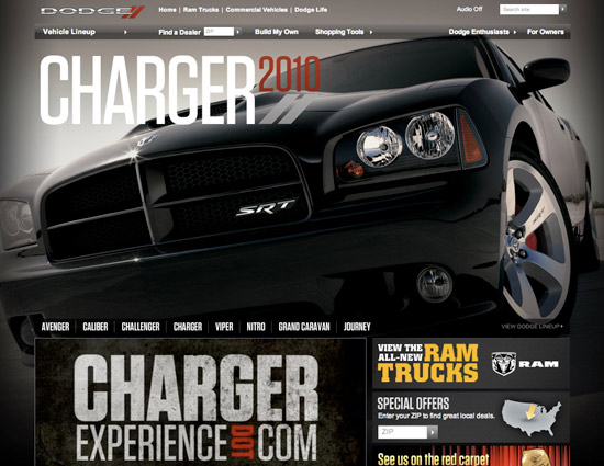 道奇的网站大多是黑色系,能让网站上的图片凸显出来。他们运用一种艳丽的赤色作为强调色。黑色给网站带来力气感,在一种精美与阳刚的氛围下展现他们的产物。黑色是一种不错的色彩,它能使产物看起来宝贵、有价值。赤色则表达出热心和振奋,是期望能让消费者以为他们是从一个值得信赖、质量有保证的公司购买到的车辆。